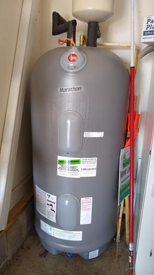 Tall marathon non metallic electric water heater provides hot water with peace of mind.
